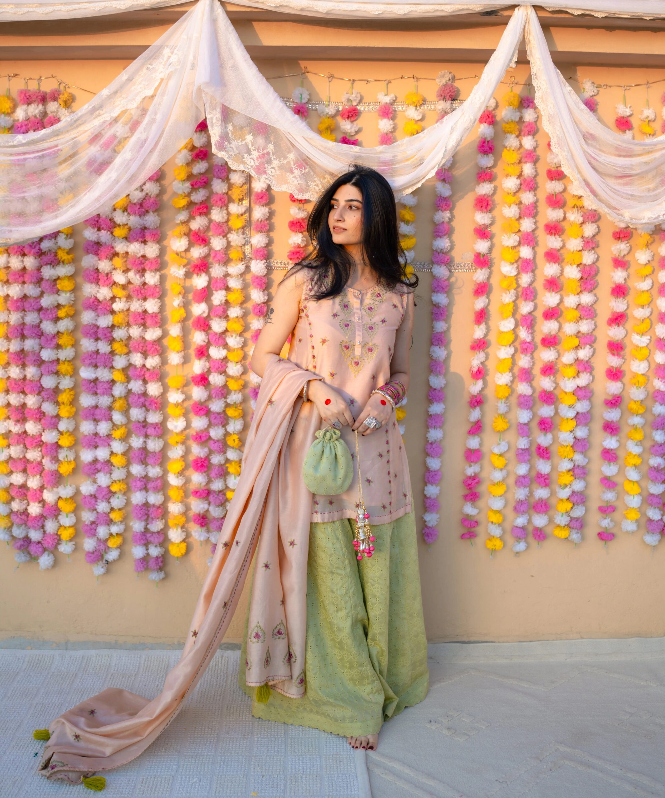- The sharrara comes fully lined, with a pure lawn slip included for the kurta.