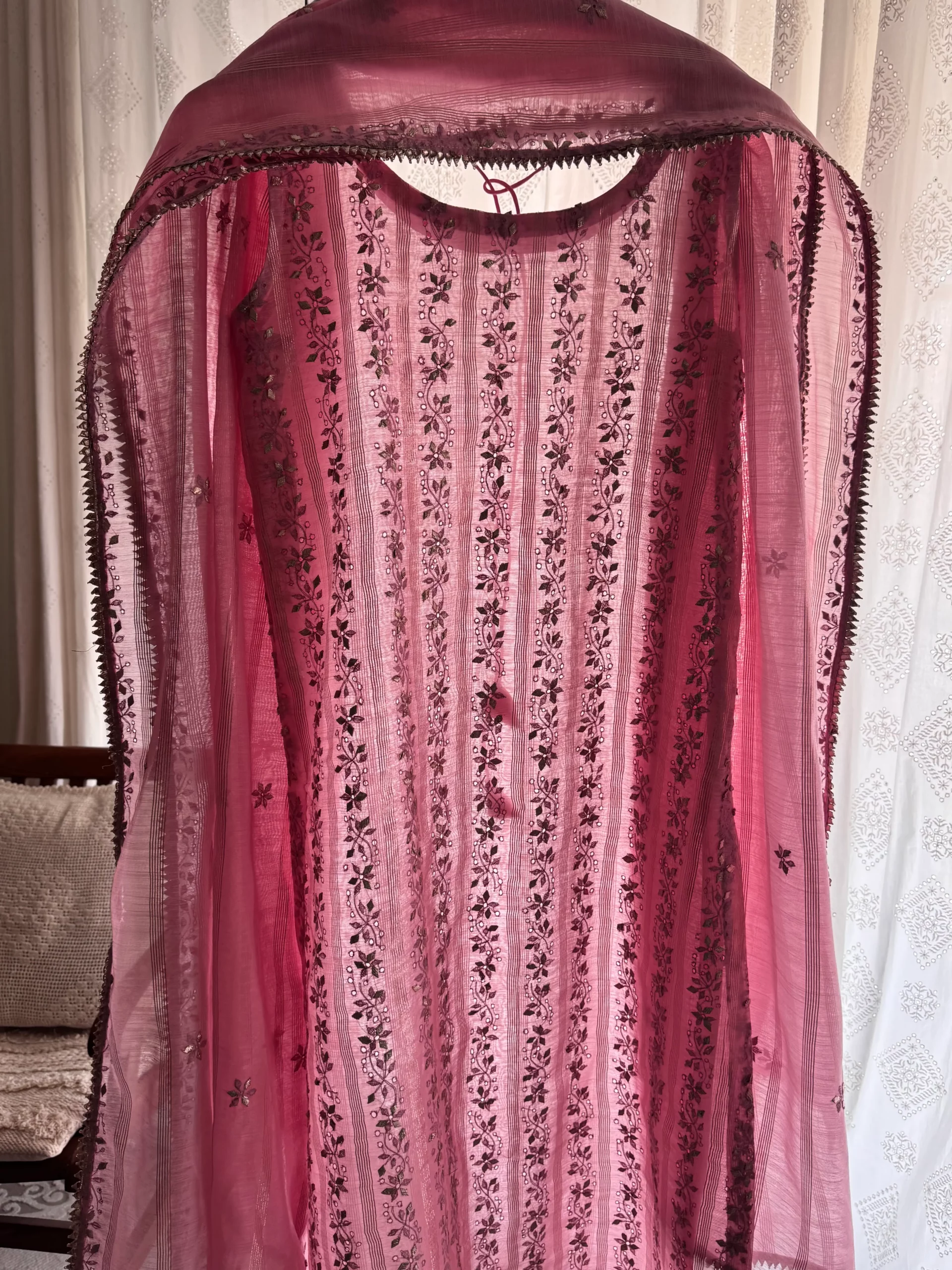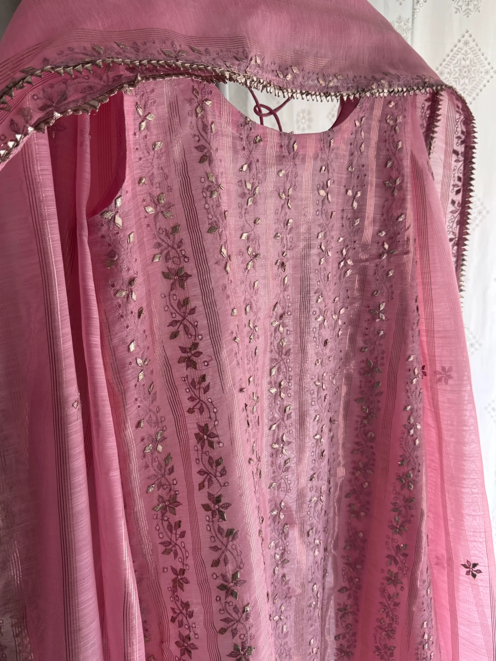 Home / New Arrivals / Mareen Sold Out Mareen₨ 45,500 2 Piece Set Highlights: A heavily hand-embroidered kurta paired with a dupatta featuring a four-sided border finished with Gotta and Thread detailing. Fabric: Premium Silk Lawn Set Includes: Fully long Embroidered Shirt Embroidered 3 yard Dupatta Out of Stock