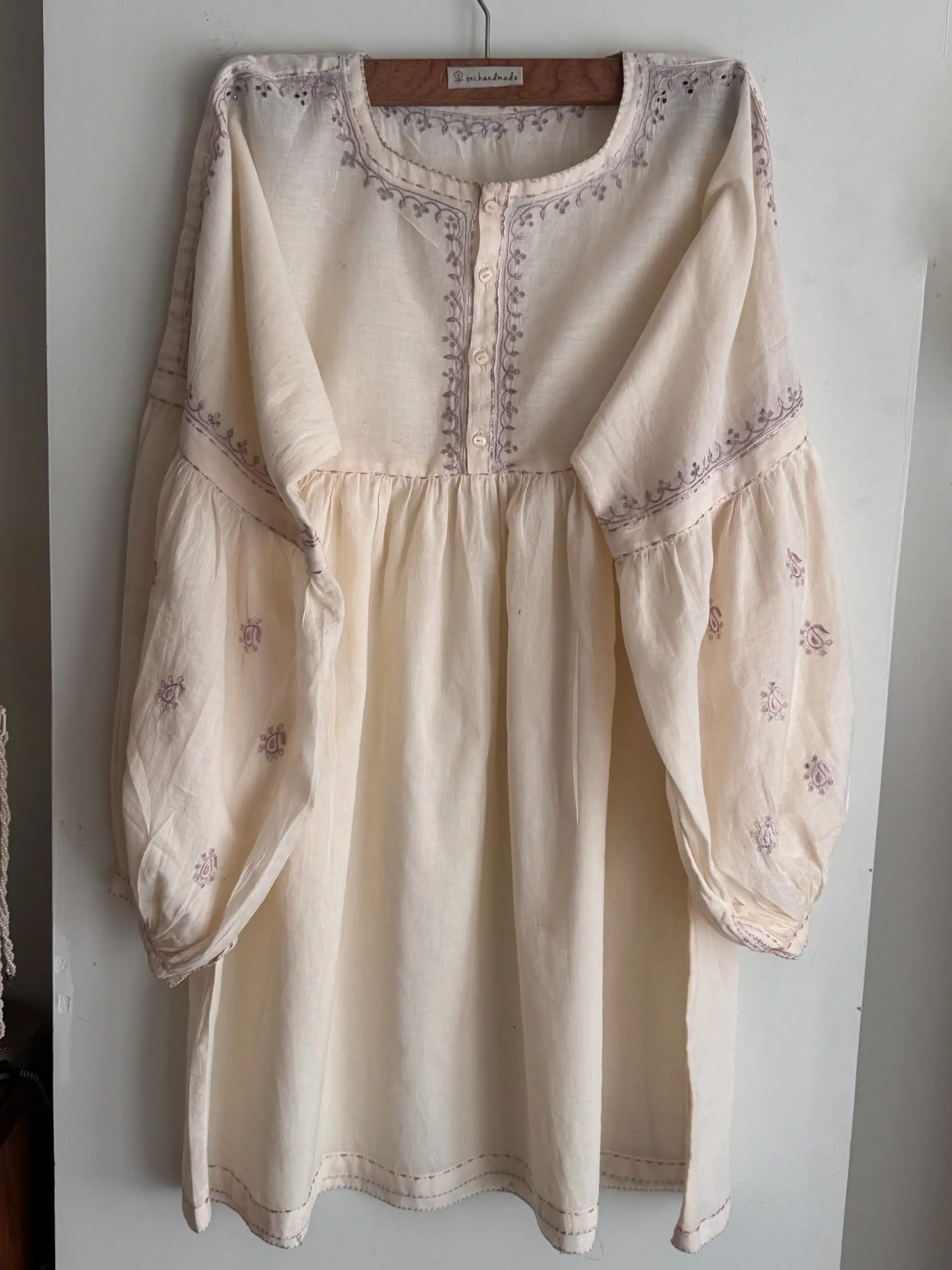 - This charming kurta is beautifully crafted with delicate soft purple embroidery along the neckline and sleeves.