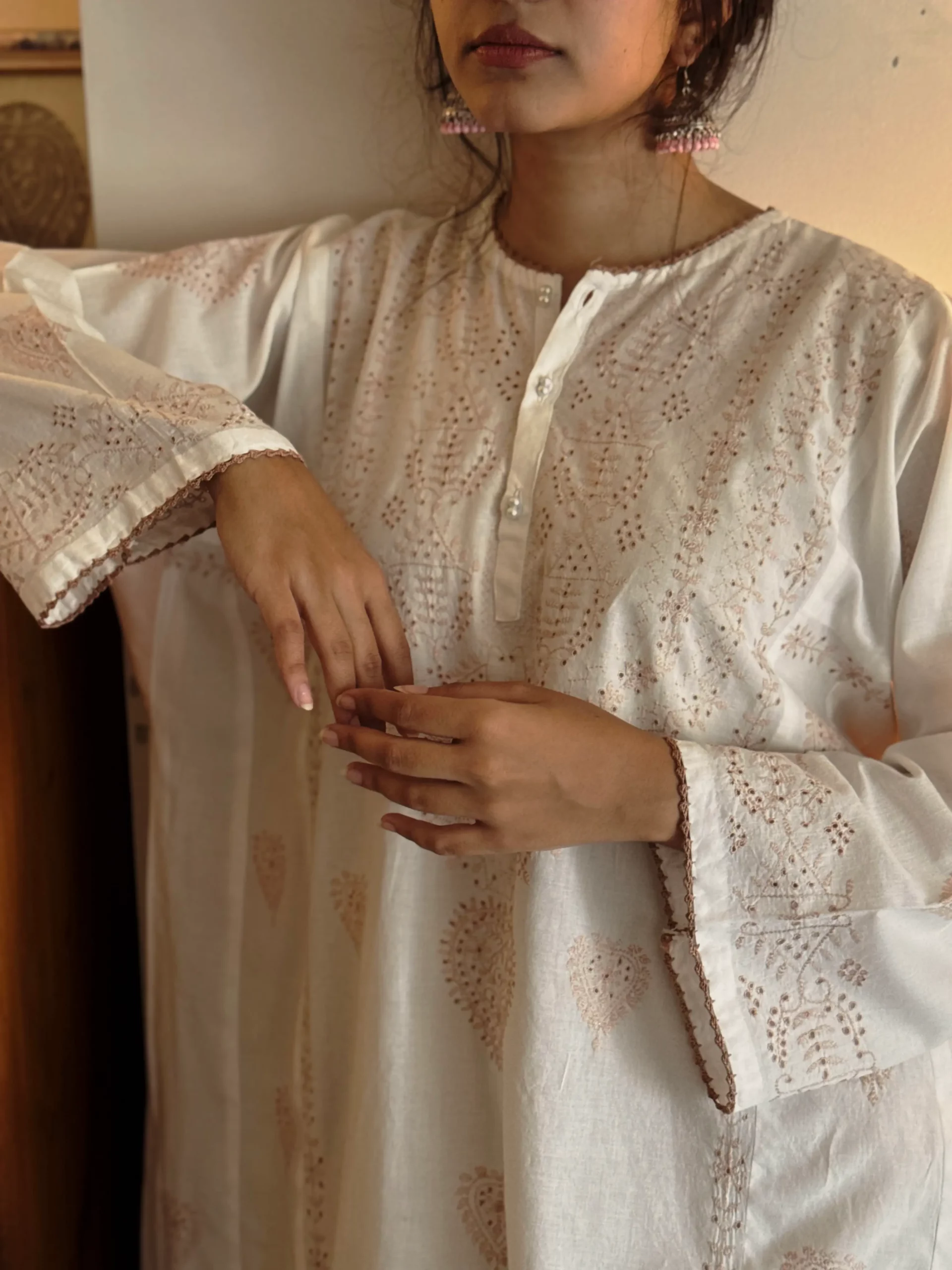 - Ivory lawn kurta featuring intricate, heavily done Chikankari hand embroidery for a statement yet timeless look.